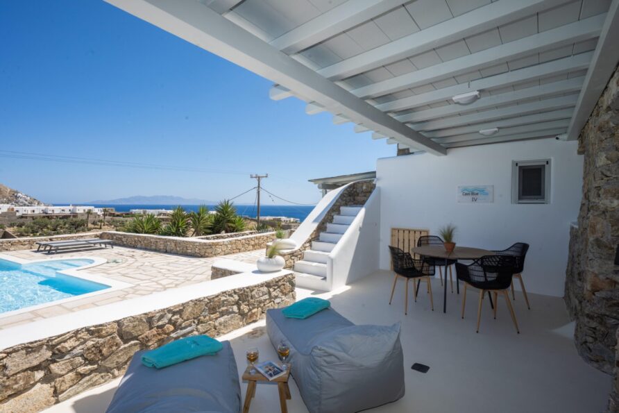 Our brand new couples villa is perfect for a quiet and relaxing stay in Mykonos. Guests will have a special experience as the villa features a pool with a view. This villa includes 2 bedrooms and 2 bathrooms with a shower and free toiletries. In the well-fitted kitchen, guests will find a stovetop, a refrigerator, kitchenware and an oven. The air-conditioned villa offers a flat-screen TV, a washing machine, soundproof walls, a tea and coffee maker as well as sea views. The unit has 3 beds.